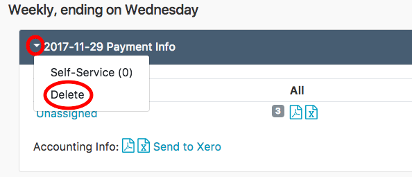 *Please note: if you have posted accounting information, this post will be reversed when the pay run is deleted. If you are using the advanced accounting option and have multiple posts per pay run, each one will need to be deleted by clicking the next to it before the pay run can be deleted.
